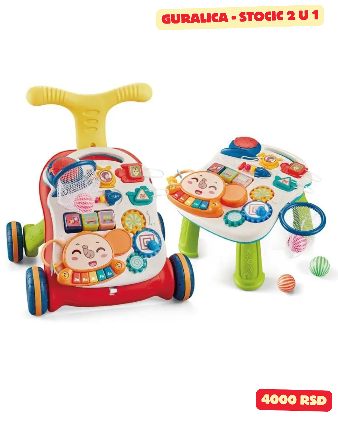 Može biti guralica sa zvučnim, svetlsonim efektima i košem sa lopticama ili se može pretvoriti u predivni muzički stočić