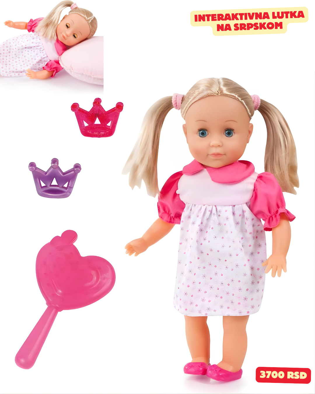 – interaktivna lutka izgovara 50 recenica na srpskom jeziku.