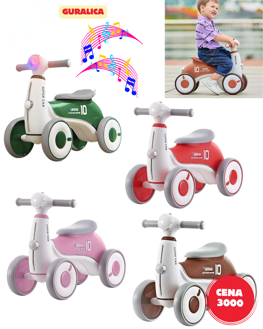 Stabilna konstrukcija sa četiri točka pruža sigurnost, dok jednostavno upravljanje omogućava detetu da lako razvija ravnotežu i koordinaciju kroz igru.