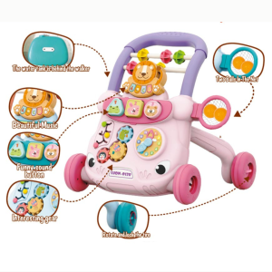 Multifunkcionalna guralica za bebe 2u1 u roze boji predstavlja sjajnu igračku za podršku razvoja prvih koraka Vašeg deteta. Ova hodalica dizajnirana je da pomogne bebi da vežba hodanje i pruži stabilnost tokom nesigurnih početnih koraka. Sa čvrstom bazom koja uključuje četiri točkića i praktičnu dršku, guralica omogućava jednostavno pomeranje i sigurno kretanje. Na prednjoj strani guralice, nalazi se interaktivna tabla sa različitim aktivnostima koje kroz igru stimulišu razvoj dečijih čula, motorike i koordinacije. Igračka uključuje elemente koji se mogu okretati, pomerati, skidati i ponovo postavljati na svoje mesto, a neki od njih proizvode zvučne efekte. Guralica se može lako transformisati u sto sa igračkama, što omogućava detetu da sedi na podu i uživa u igri. Mali koš na stolu nudi priliku za vežbanje koordinacije pokreta, dok dete ubacuje lopticu u obruč, koji je postavljen na visini koja je lako dostupna.