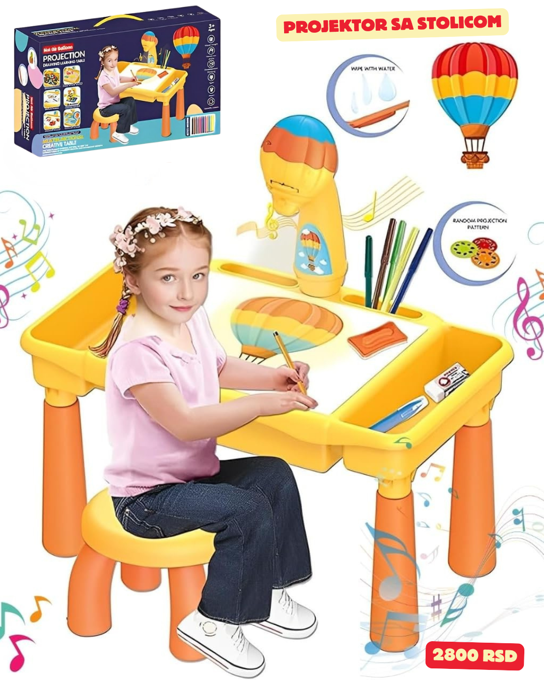 Sto ima ladice sa strane i mogućnost otvaranja gornjeg dela, tako da se sav pribor za crtanje može staviti unutar stola