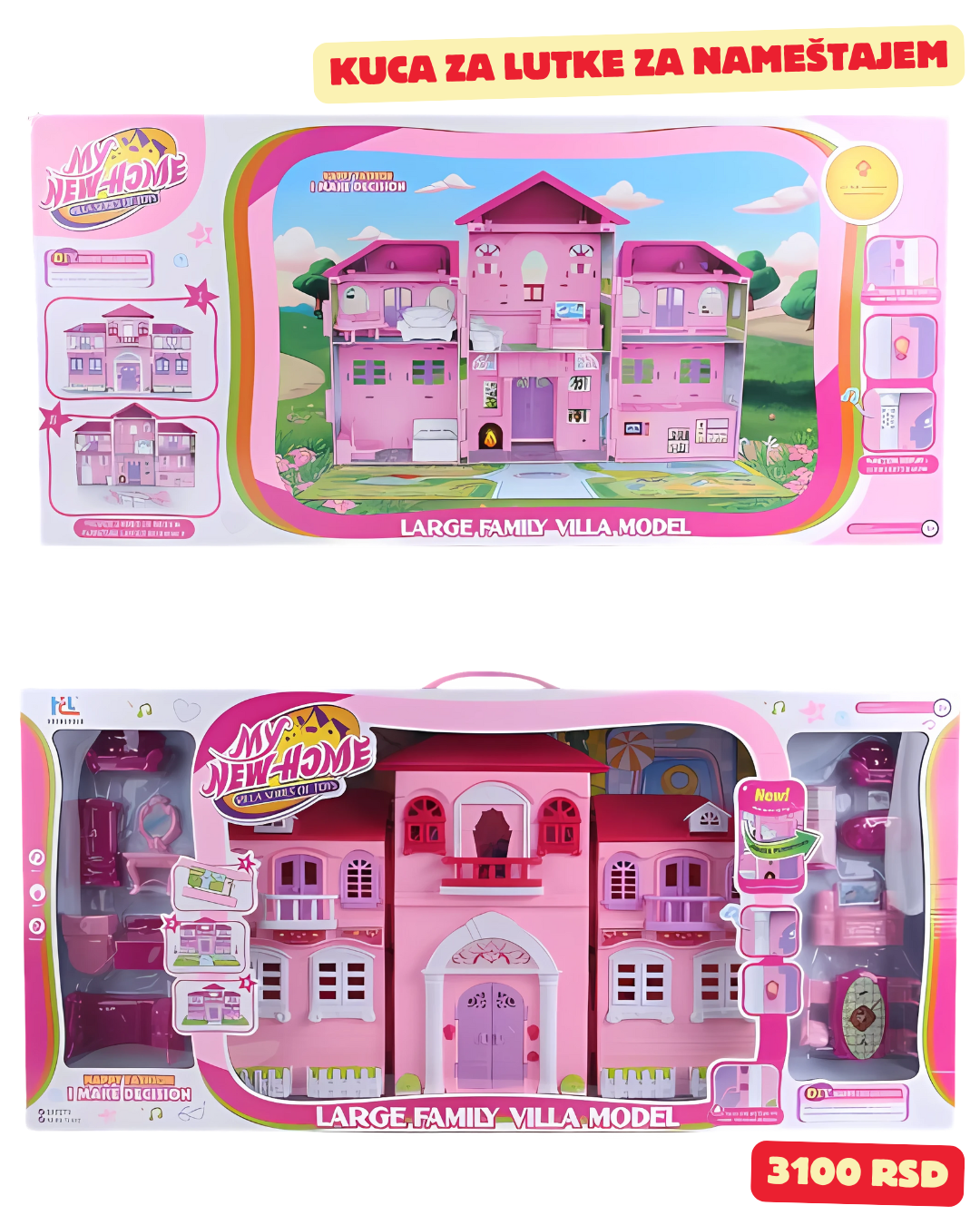 Velika kuća za lutke sa nameštajem – savršena vila za igru! 🏠💖
