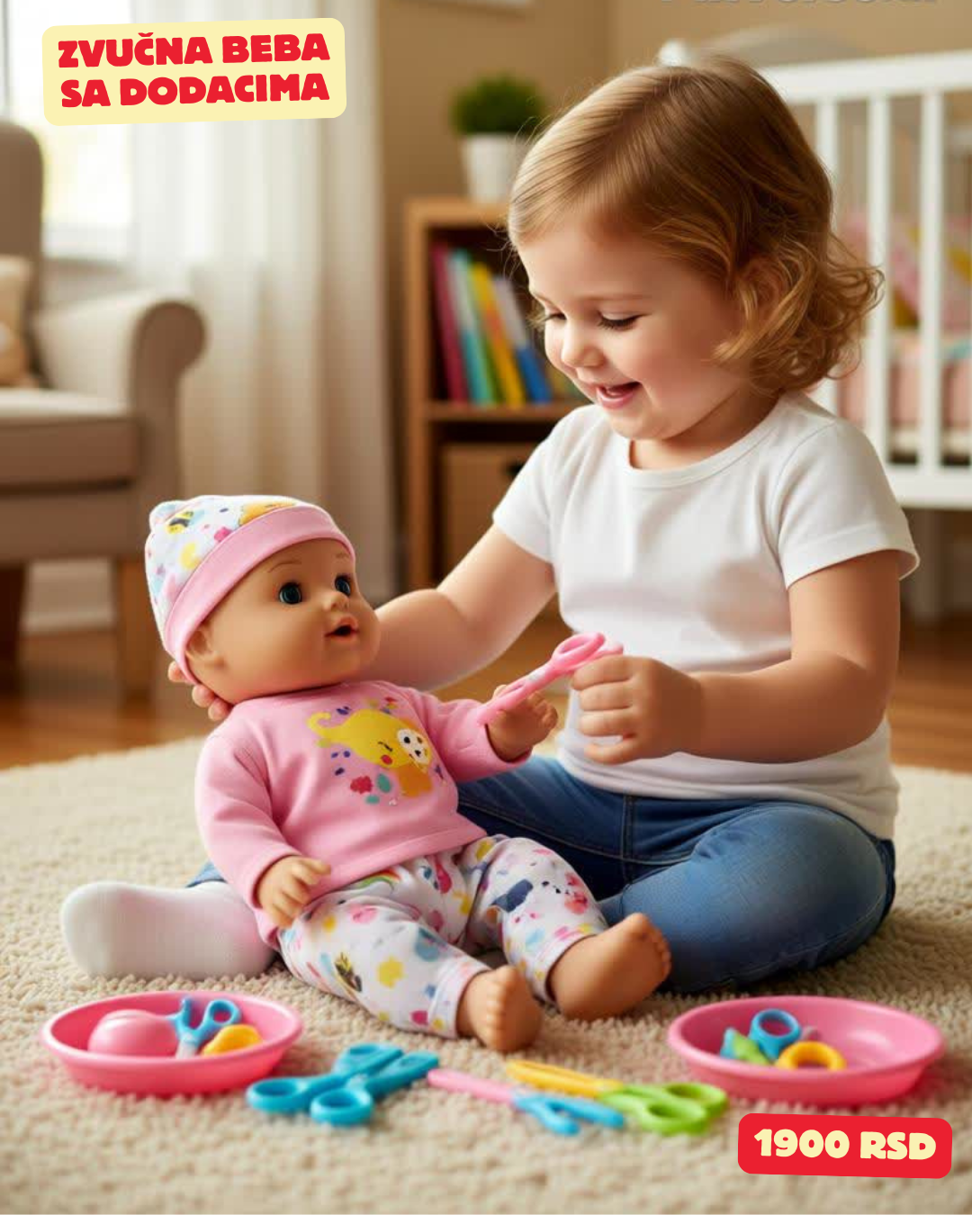 beba sa garderobom, tanjirić sa priborom, flašica, portikla, zvečka…