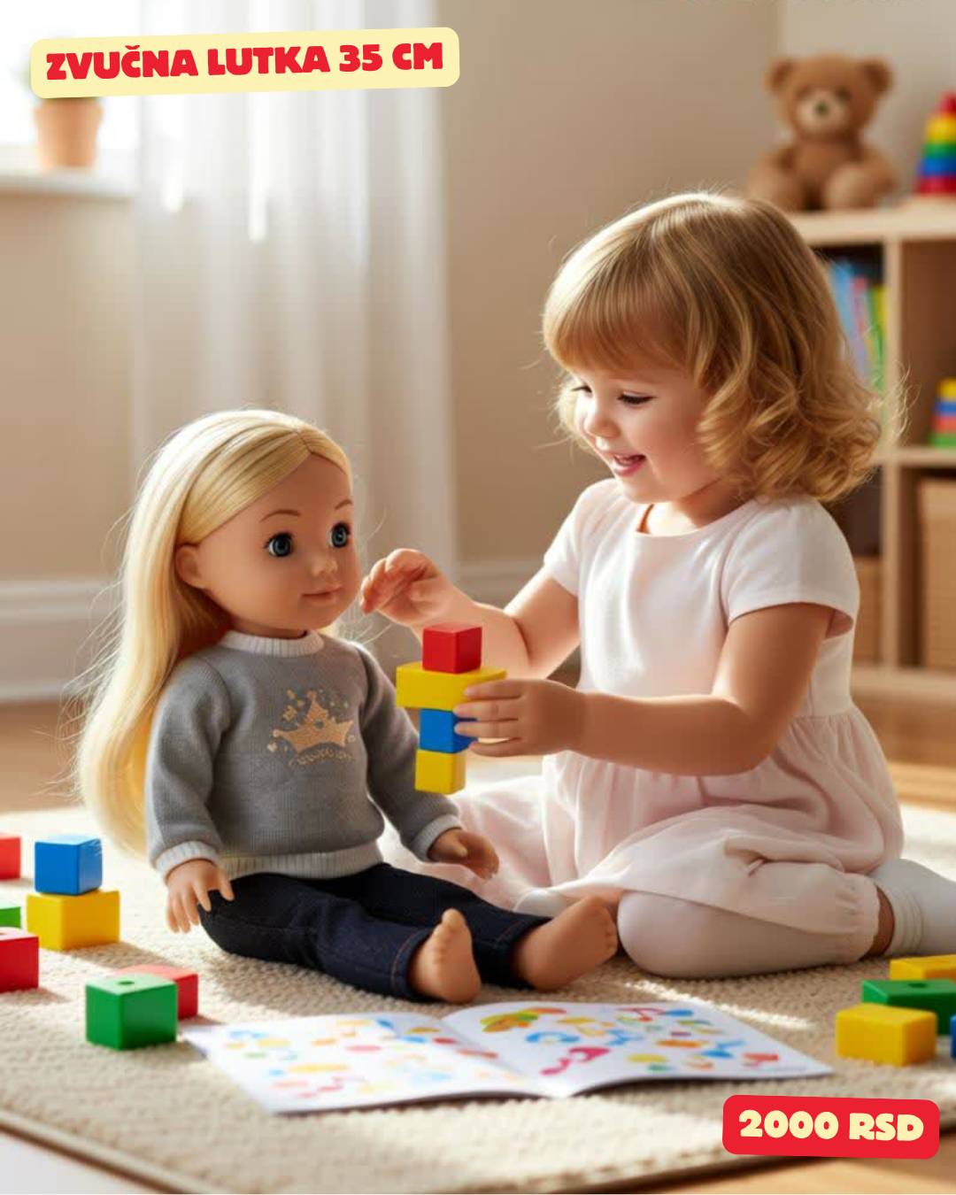🎵 ZVUČNA LUTKA 35 CM – SAVRŠENA DRUGARICA ZA IGRU! 🎀