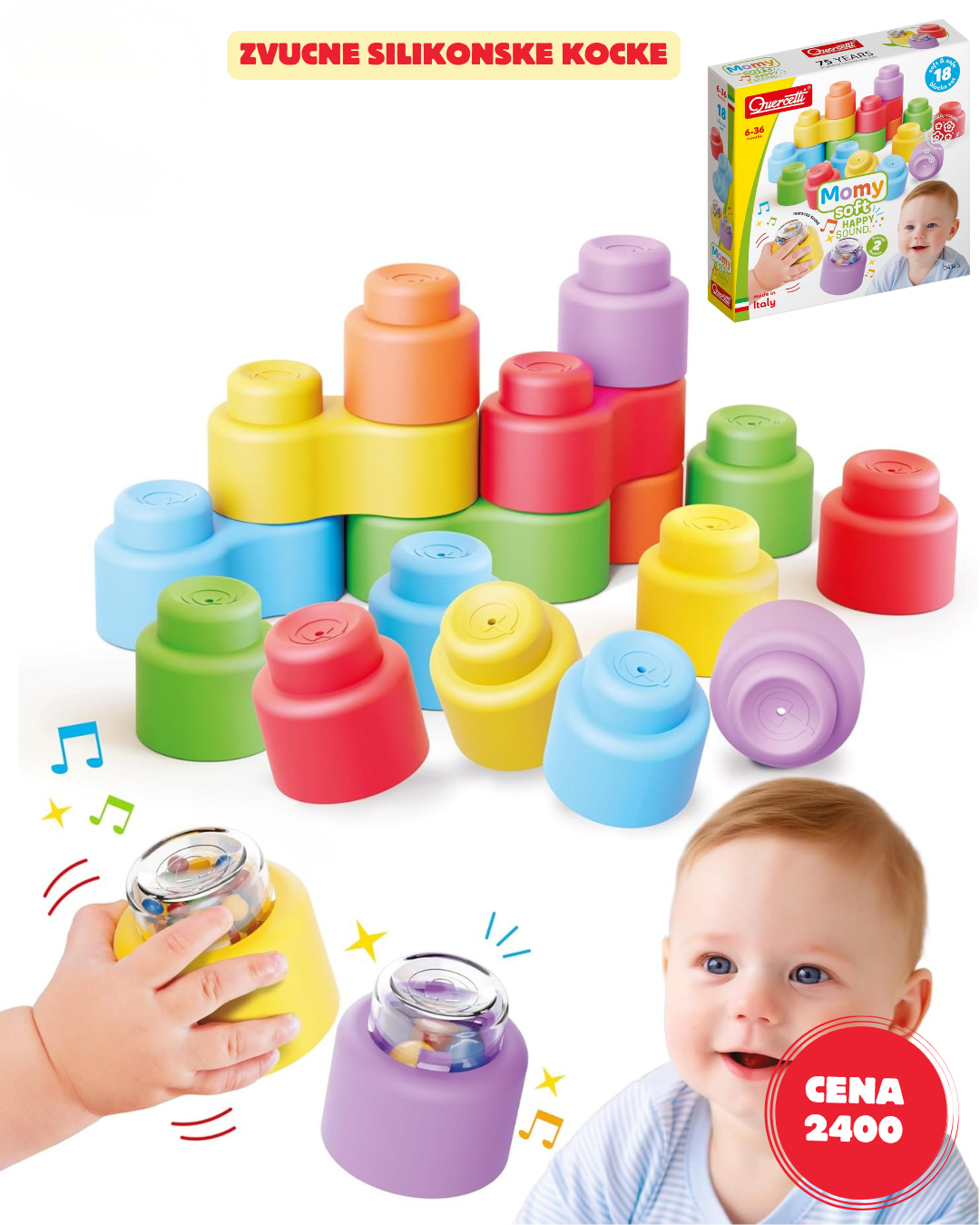 2 ugrađene zvečke: pružaju dodatno senzorno iskustvo i stimulišu sluh, kao i radoznalost
